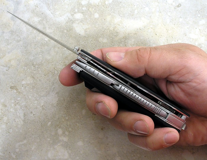 • in the same layer is a can opener/cap lifter blade. It too uses a thumb stud for easy one-hand opening.
