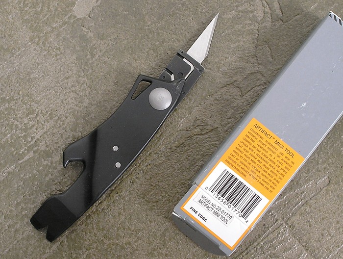 Small prybar tools with bottle opener cutouts and integral screwdrivers had been the exclusive domain of Peter Atwood prior to the Gerber Artifact. Combining stainless steel construction with a folding razor knife that locks open, all for a MSRP of less than $15, the Artifact will expose this type of multitool to a large number of folks who were previously unable to afford the pricey Atwood offerings.