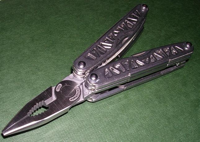 • Triangle shaped cutouts skeletonize these frame members, reducing weight. Reports are that Leatherman engineers went to great lengths to assure that these cutouts did not weaken the handles. Numerous tools were destruct tested in the process of finding the perfect balance between strength and weight. (see photo below right)