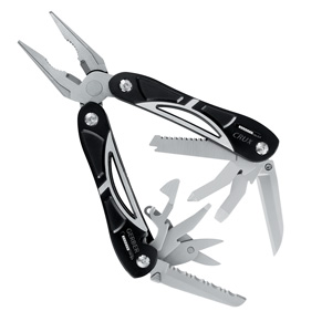 All of the blades and tools lock open securely. Lock release is accomplished by knurled metal slider switches along the sides of both handles.Other Features